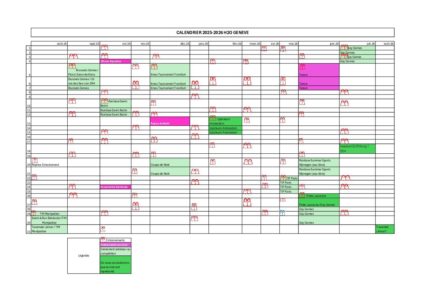 - participer aux compétitions sous la bannière H2O GENÈVE ou en tant qu’accompagnateurs pour soutenir nos nageur/ses et découvrir la ville-hôte